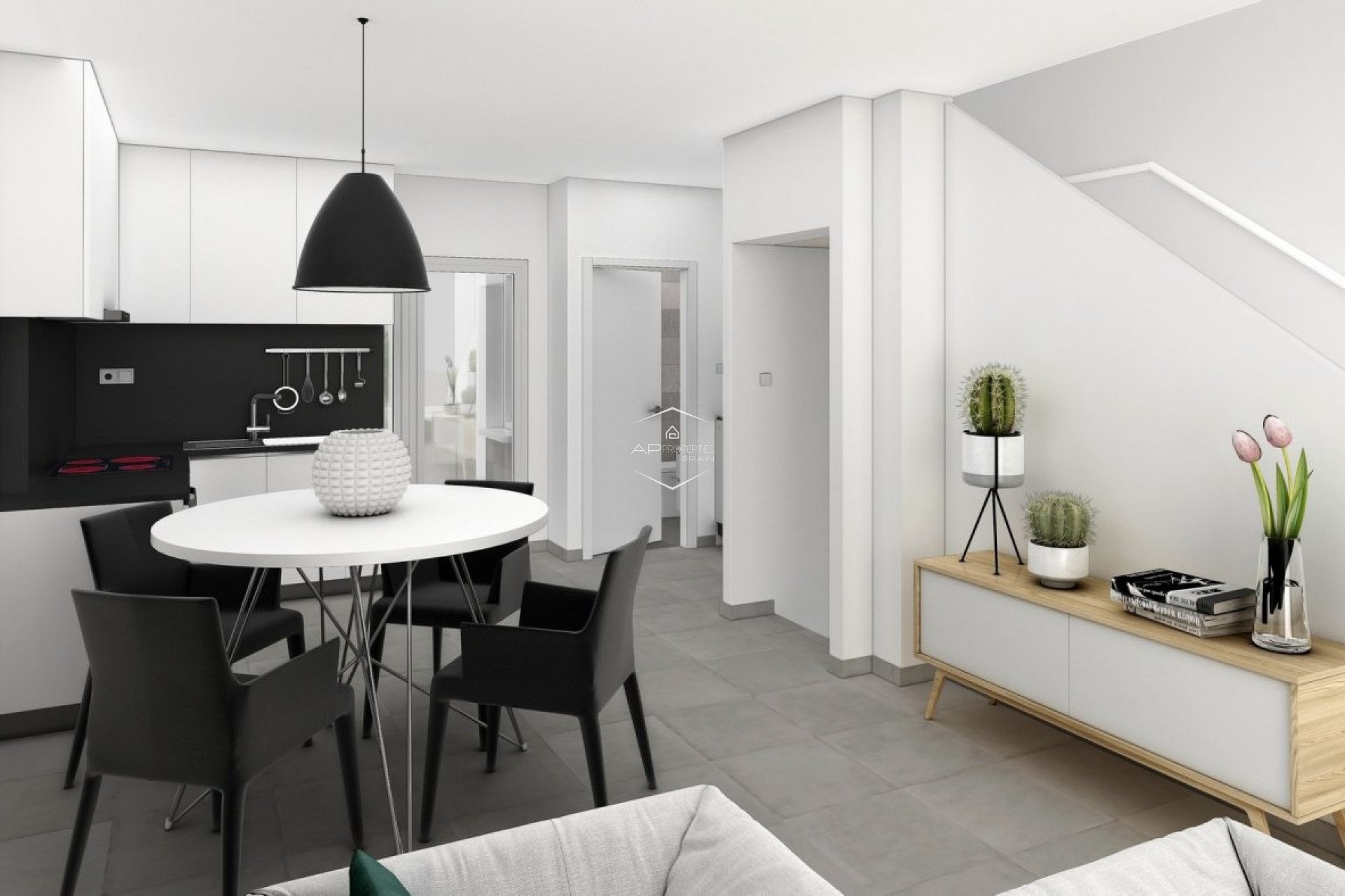 HERMOSAS CASAS ADOSADAS EN LA MANGA Este residencial se encuentra en el km 14 de La Manga en una parcela única, en primera línea del canal Estacio y a tan solo 50 metros del Mar Mediterráneo. Inmejorable por su situación, a tan solo 800 metros del puerto de Tomás Maestre, donde encontraremos una selecta zona de ocio con bares, cafeterías, restaurantes, tiendas, supermercados, farmacias, bancos, etc. Este proyecto cuenta con 28 magníficos dúplex de 2 y 3 dormitorios. En Residencial se han diseñado las viviendas, para aprovechar cada rincón de la casa, así como el cuidado en la elección de los materiales y su diseño La Manga del Mar Menor es una franja de tierra natural rodeada por dos mares, el Mar Menor y el Mar Mediterráneo. A esta rareza se le suman las múltiples opciones de ocio y tiempo libre, restaurantes, supermercados, centros médicos, farmacias, polideportivos náuticos, campos de golf. La Manga se encuentra en la costa norte de la Costa Cálida y es un destino de vacaciones popular para los turistas. La estrecha franja de tierra que separa la laguna cálida y el mar más frío tiene un microclima único. Es una de las zonas más exóticas de España. El aeropuerto de Corvera está a aproximadamente 1 hora en coche y el aeropuerto de Alicante a unas 2 horas.