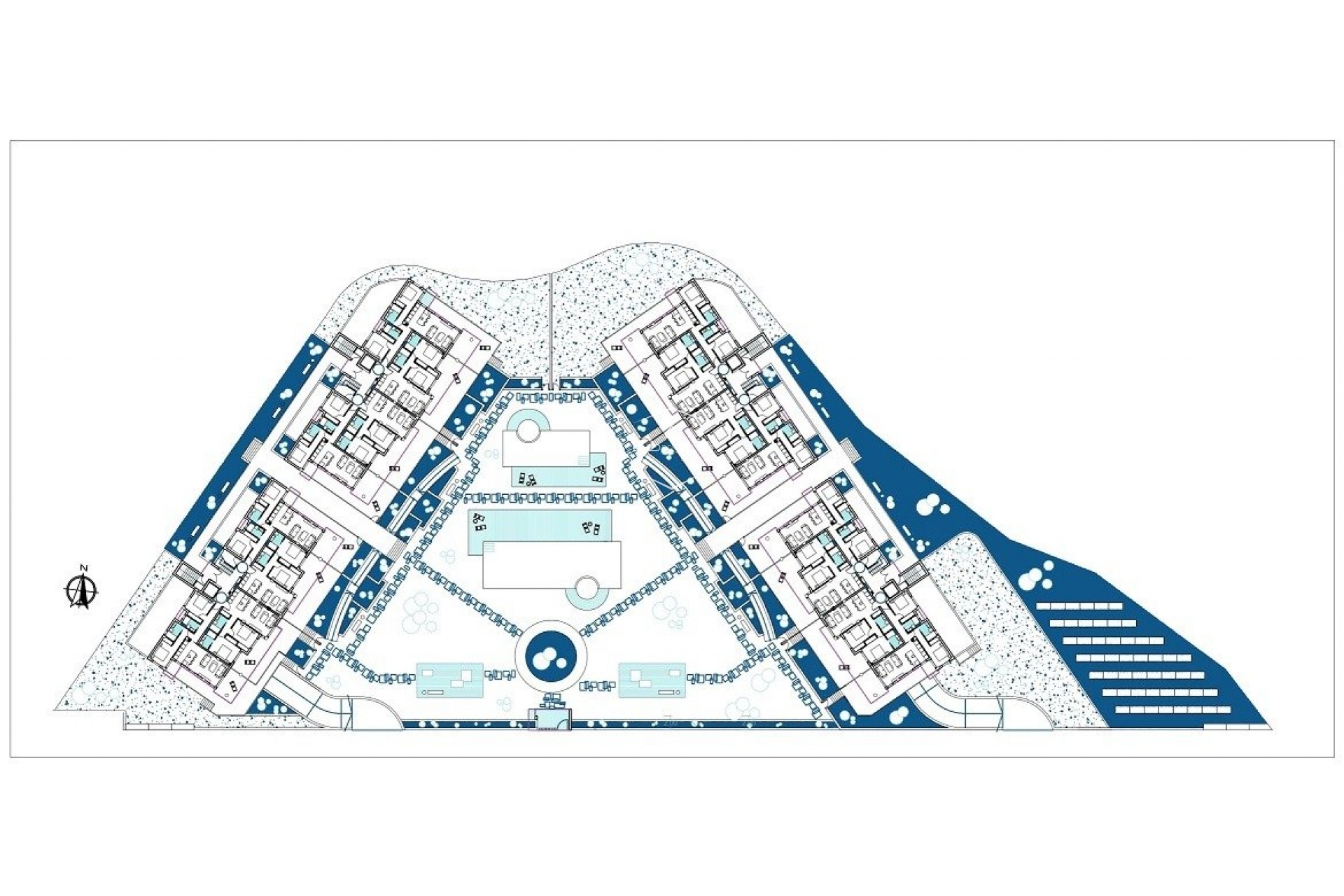 Residencial de obra nueva con 60 apartamentos distribuidos en 4 bloques con zona de terrazas para planta baja, primera y segunda, piscina comunitaria, piscina climatizada y solarium con cocina de verano en los áticos, para disfrutar de todas las horas de sol todos los días del año.