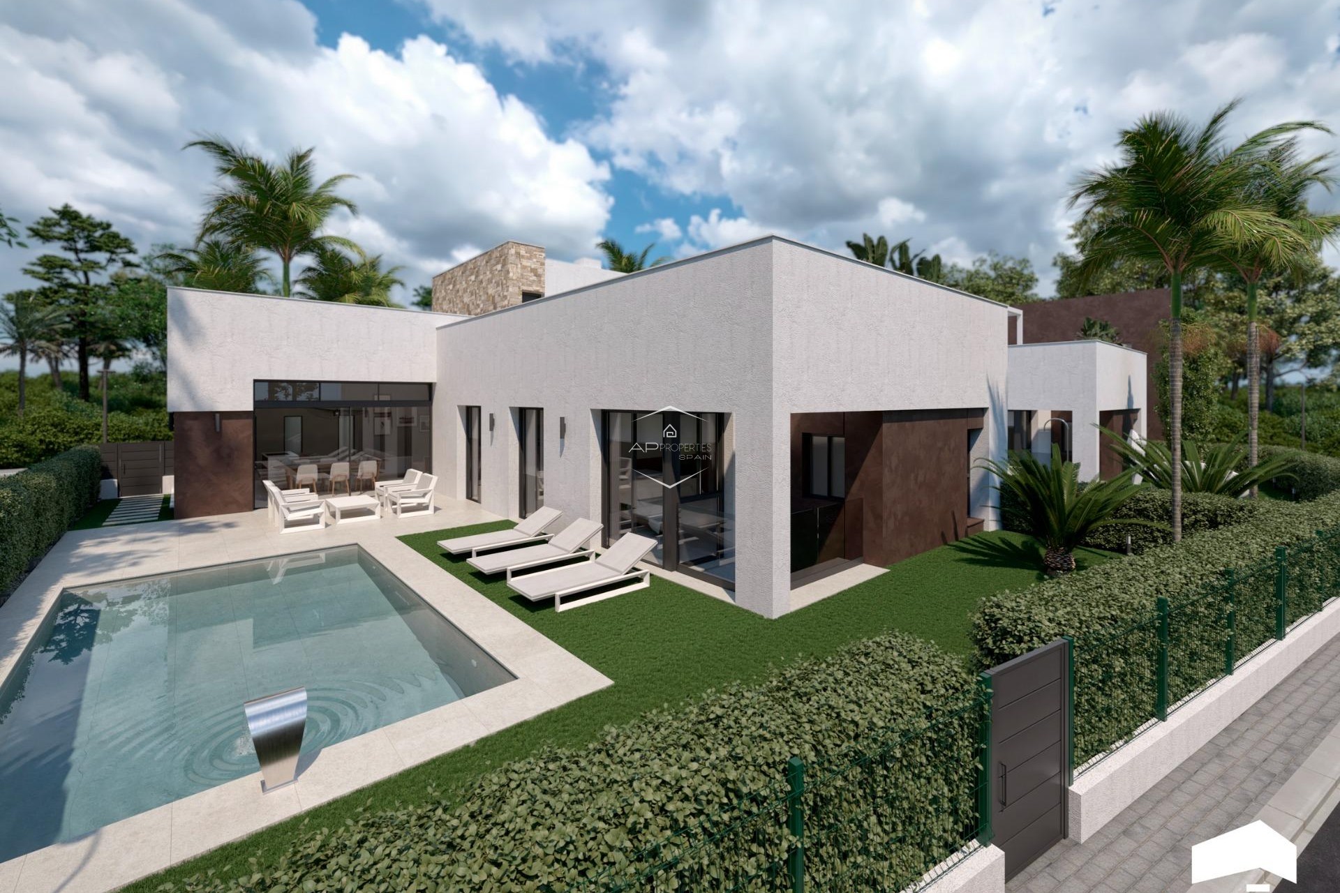 NEW BUILD VILLAS IN PRIVATE GATED RESORT IN PROVINCE OF MURCIA New Build villas in private gated resort in the Murcia region, surrounded by excellent golf courses and just 10 minutes from the sandy beaches of the Mar Menor Sea. Villas build over of 2 floors and has 3 bedrooms, 2 bathrooms and a guest toilet and are designed with a contemporary style and open concept, consisting of a fully equipped kitchen and living-dining room, fitted wardrobes, private garden with the pool and off road parking space, private solarium. Large villa of 146m² plus a very useful 120m² basement finished with smooth walls, water and electrical points. This offers the perfect opportunity to use as additional accommodation, office, gym, cinema room, children's playroom.... Located in a private gated resort, with a main access entrance and 24 hours security. The resort is designed around an impressive 126.000 m2 green area. It comprises walking and cycling paths, sport facilities, paddle and tennis courts, a mini-golf course, gardens, dog parks, leisure areas, clubhouse…. Also in the central area is the jewel of the resort, a crystal-clear artificial lake of almost 17.000m2 of water surface, surrounded by white sandy beaches and palm trees, bringing a piece of the Caribbean to the Murcia Region. There are 2 islands in the lake, one of them has its own bar, there are also “beach Chiringuitos” spread around the lake. The resort is strategically located less than 4 km from the beach and the town of Los Alcázares, where you can practice various water sports, surrounded by several golf courses and the city of Cartagena less than 15 minutes by car and 22 km from Murcia airport, therefore having a wide cultural, gastronomic and sports offer within reach.